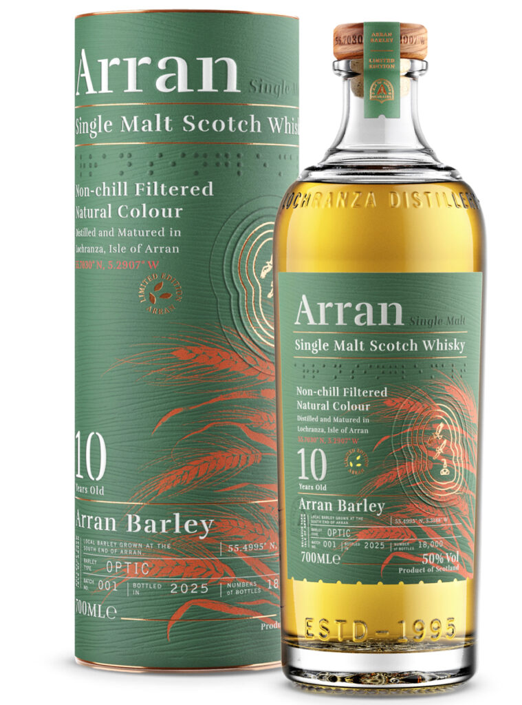 This limited edition is distilled at Lochranza Distillery from malted barley grown on the Isle of Arran — including at the Currie family’s Bellevue Farm near Blackwaterfoot. The initiative strengthens traceability and island terroir by using locally grown barley.