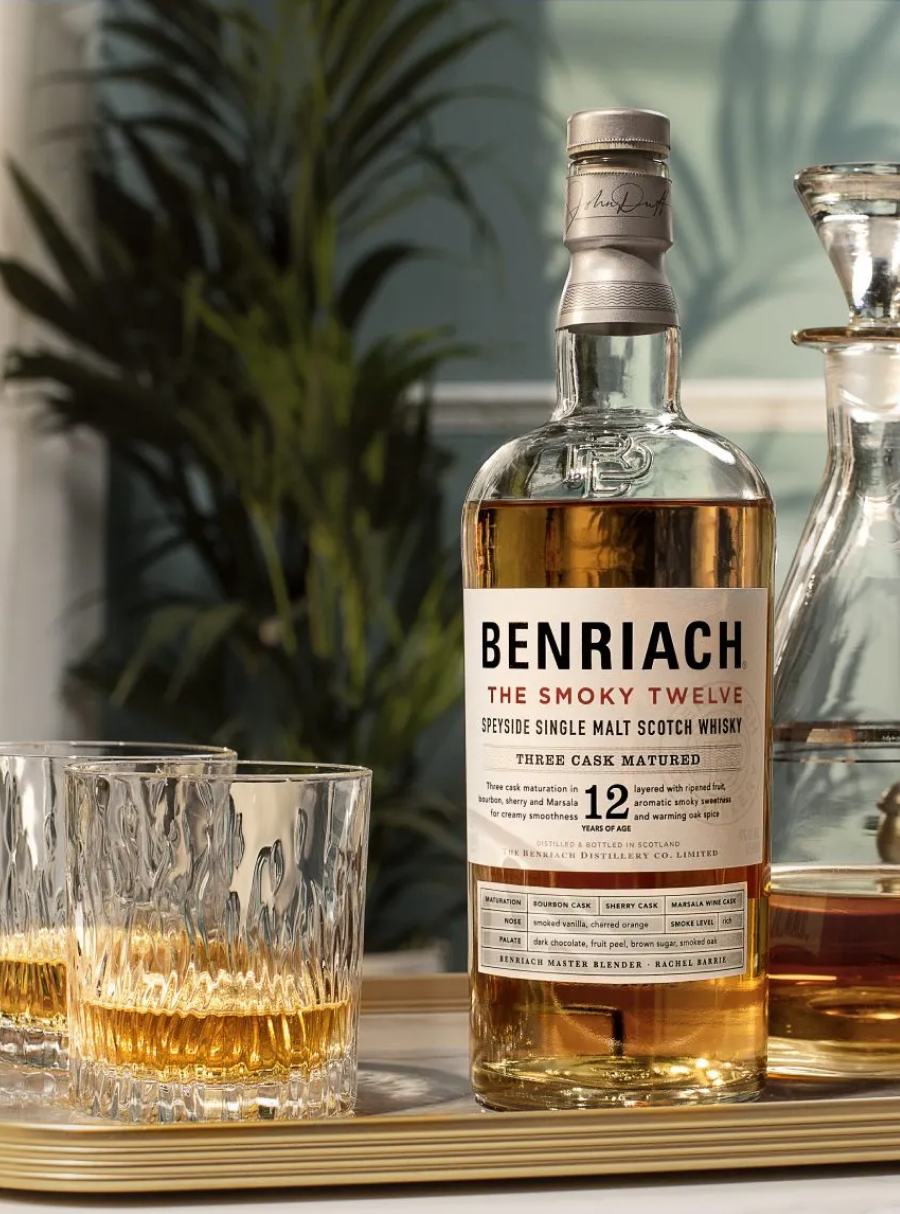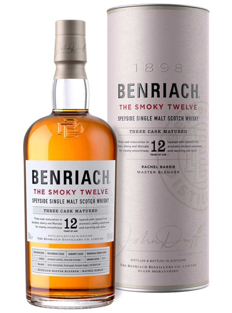 BenRiach The Smoky Twelve is a rich and complex 12-year-old single malt whisky from Speyside, renowned for its harmonious balance of gentle peat smoke and deep, layered flavors. This expression is matured in three different types of casks — bourbon, sherry, and virgin oak — creating a rich and nuanced flavor profile with notes of sweetness, spice, and smoke.