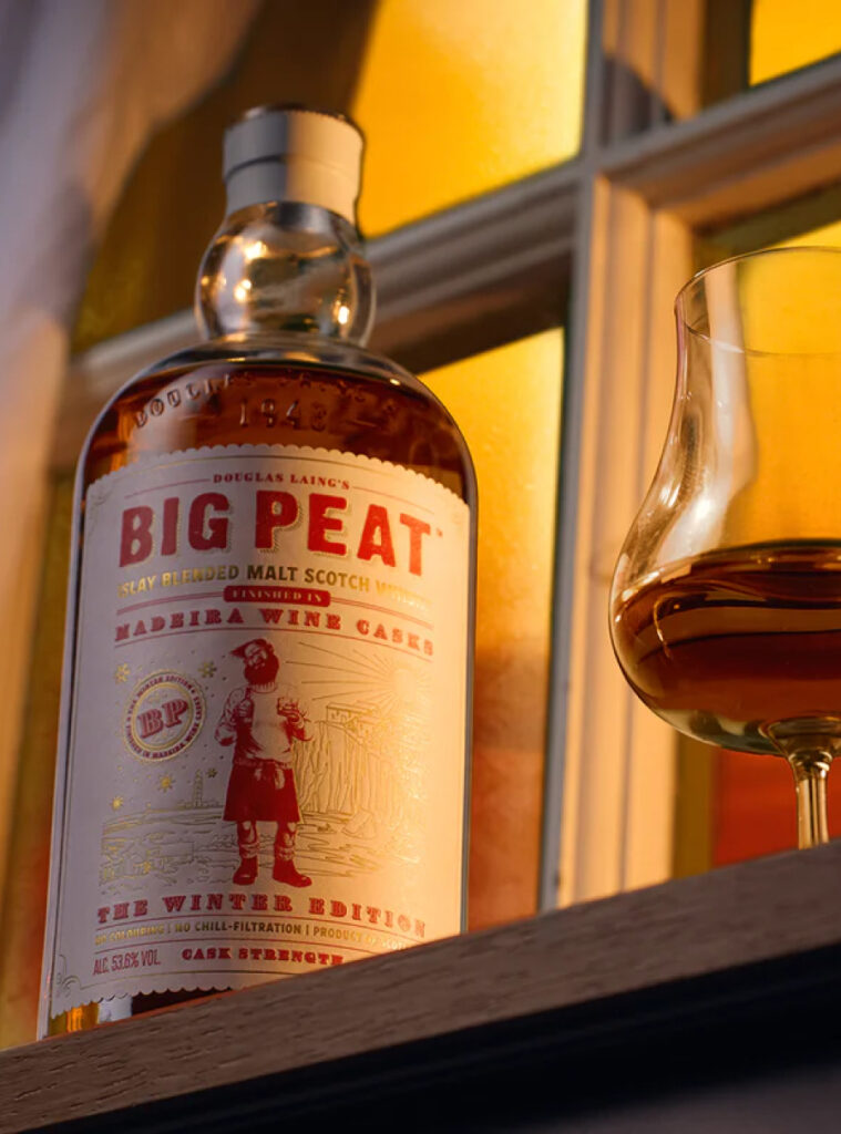 Big Peat is Douglas Laing’s cult Islay character and part of the Remarkable Regional Malts range, representing the island’s famously smoky style. The Winter Edition 2025 marks his first dedicated winter bottling, trading the Santa hat for a more refined, storm-ready look while keeping the same unapologetically peaty soul.