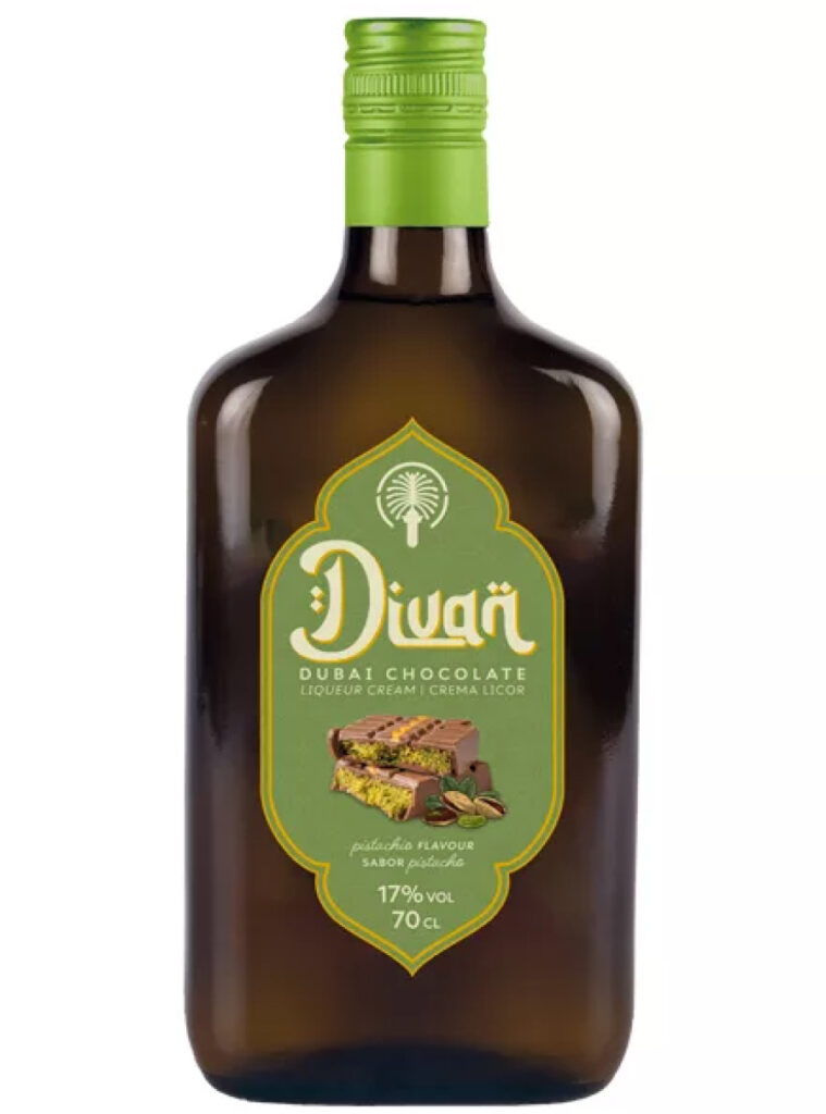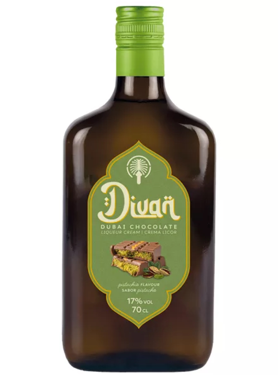 Divan Dubai Chocolate Liqueur is a luxuriously creamy chocolate liqueur with a distinct “Dubai” vibe: soft milk chocolate, roasted pistachio notes, and a rich, dessert-like fullness. It’s made as a velvety cream liqueur where cocoa and nutty tones come together in an indulgent yet well-balanced style—perfect when you want something sweet, but still refined.