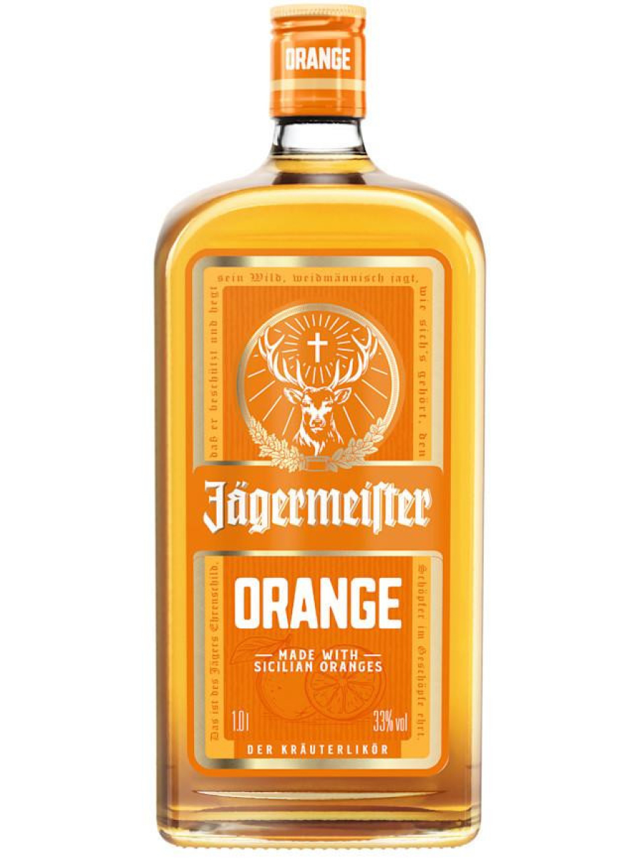 Jägermeister Orange is a citrus-forward take on the original Jägermeister—still rooted in the brand’s 56 botanicals (herbs, roots, flowers and fruits), but with a bright twist of orange and mandarin. The fruit character is achieved by adding a high-quality citrus oil/extract to the herbal base, giving it a smoother, fresher profile while keeping that signature, gently bitter herbal edge. Bottled at 33% ABV, it’s slightly lighter in feel than the original and built for easy, refreshing serves.
