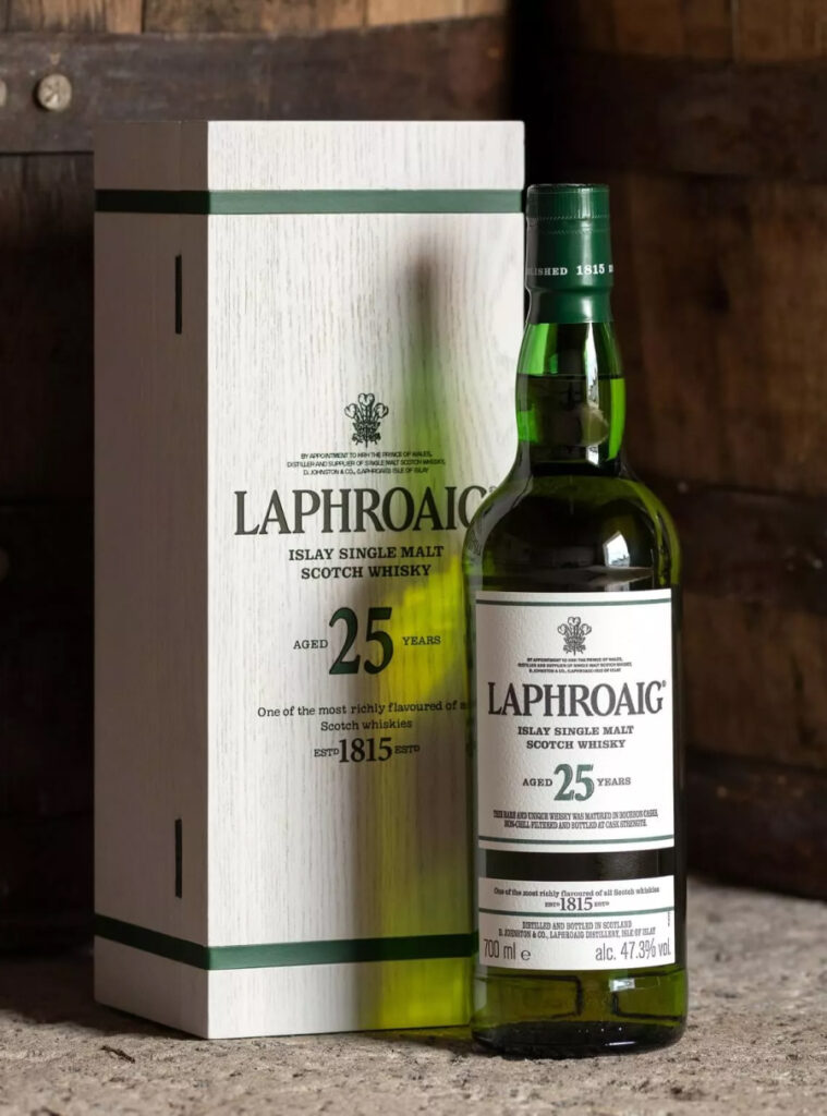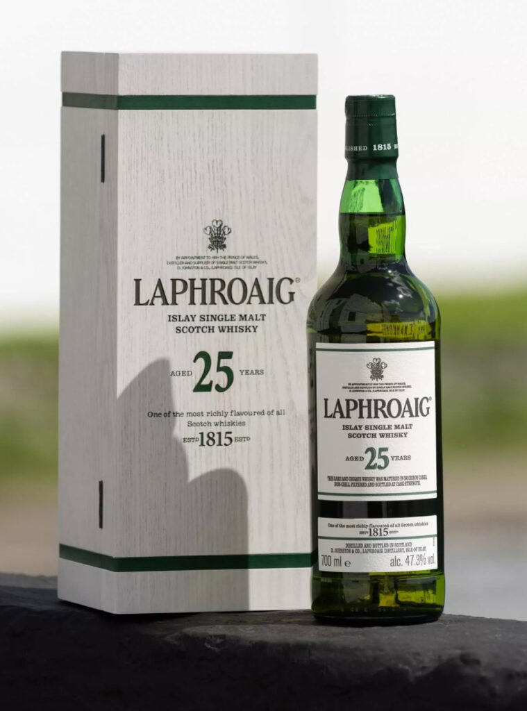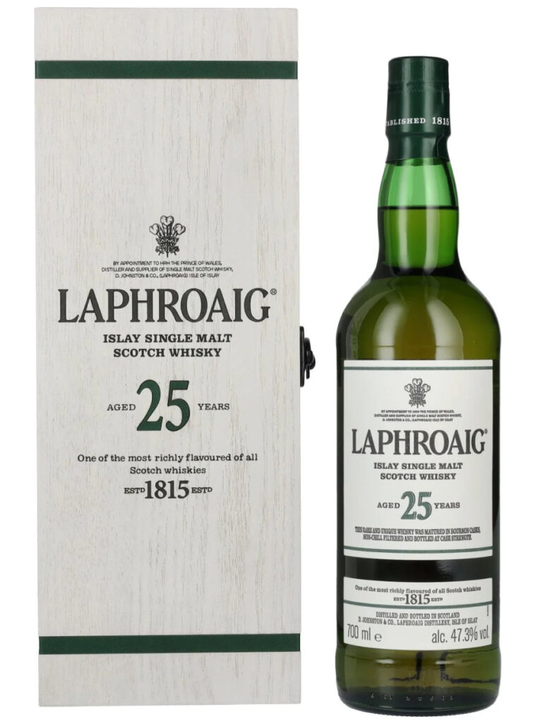 • a classic Laphroaig aftertaste, evolved and mellowed by 25 years in cask