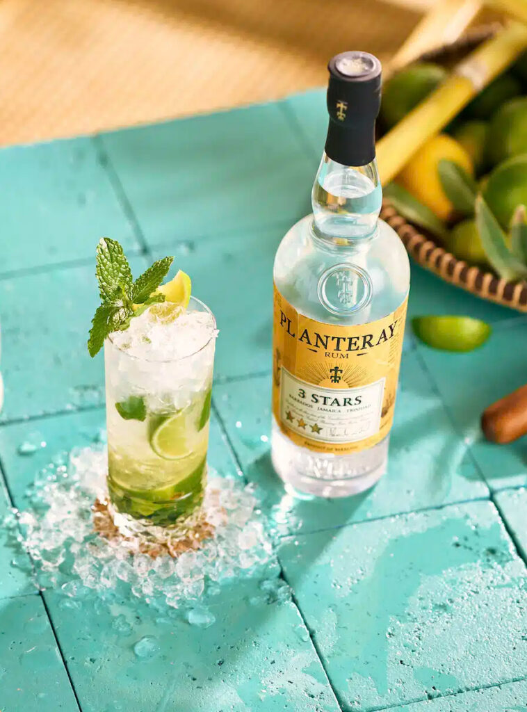 Plantation 3 Stars is a blend of rums from 3 of the “stars” in Caribbean rum production: Barbados, Trinidad and Jamaica – hence the name. The mixture consists of unaged Barbados rum, 2-3 year old Trinidad rum, unaged Jamaica rum and a touch of 10 year old Jamaica rum, which gives a depth of flavor that you normally rarely find in “cocktail rum”.