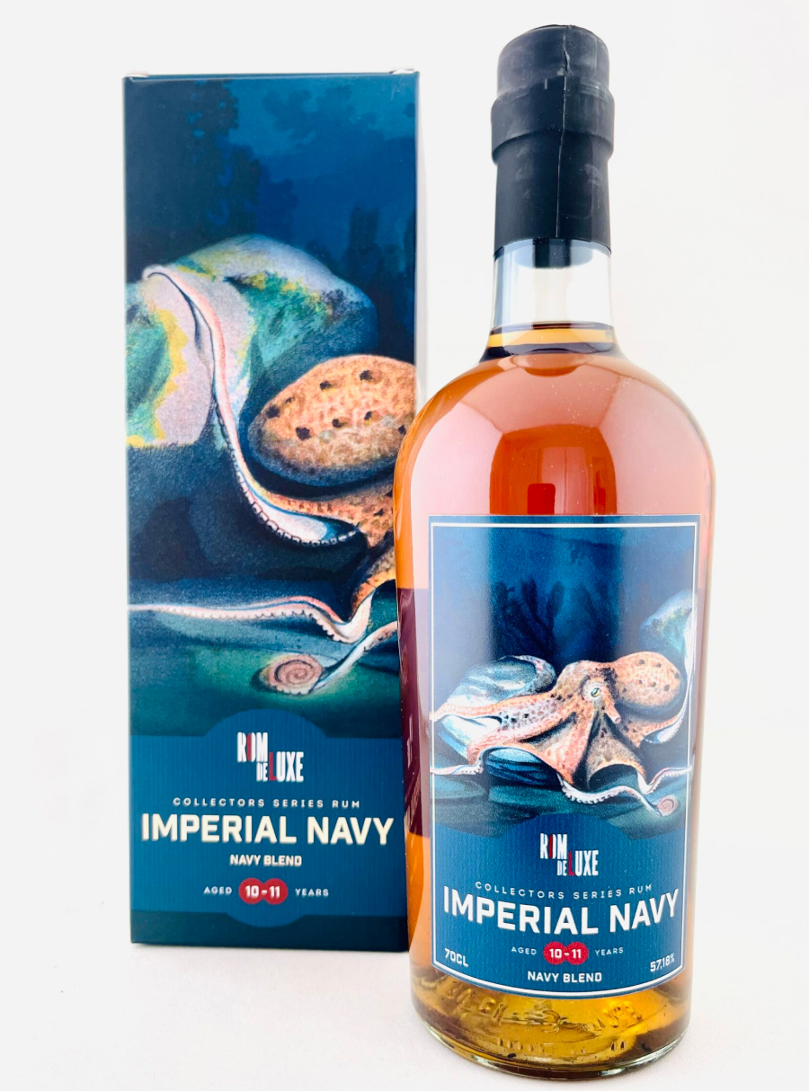 Rom De Luxe Imperial Navy Blend (Collectors Series No. 1) is a traditional-style navy rum with a modern craft twist. It is a blend of rums from four different countries – Trinidad, Barbados, Jamaica and Guyana – all aged between 10 and 11 years, echoing the old navy practice of combining robust rums from across the Caribbean.