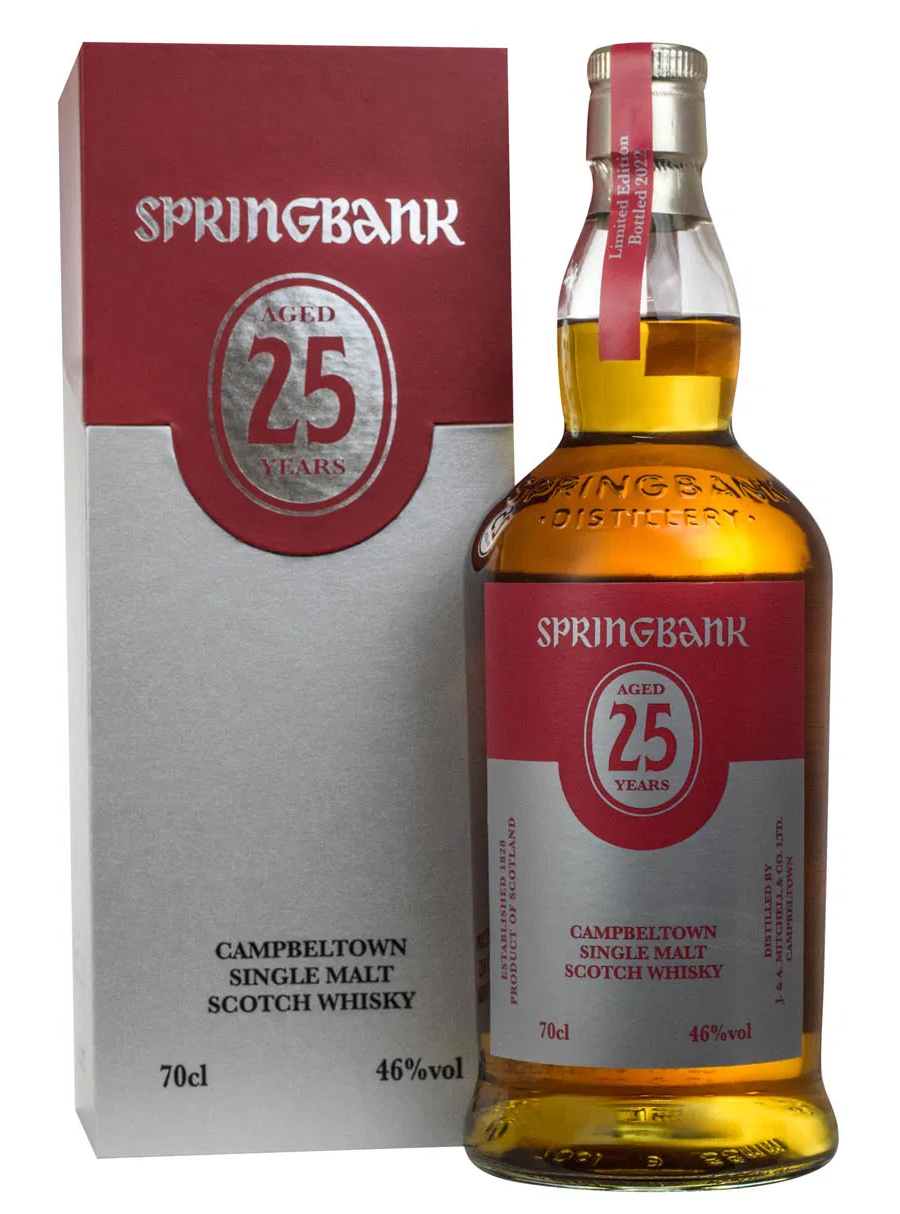 Springbank 25 Years 2022 is an extremely sought-after Campbeltown single malt from one of Scotland’s most iconic distilleries. The 2022 release is composed of whiskies matured for a full 25 years in a mix of bourbon and sherry casks, resulting in a deep, mature and highly complex profile. You get Springbank’s trademark maritime, slightly oily and gently peated character layered with sweet fruits, vanilla, nuts and well-integrated oak spice. The bottling strength sits in the mid-40% range and, as always with Springbank, it is non-chill filtered and naturally coloured.