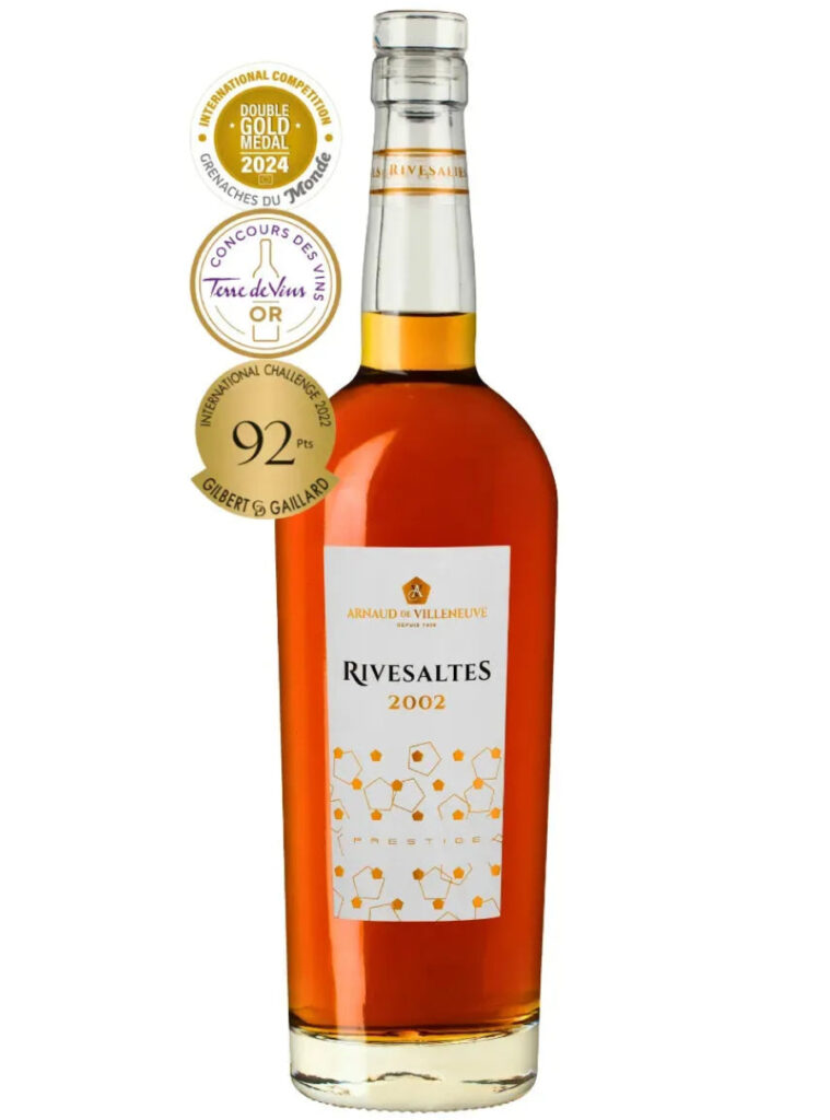 Arnaud de Villeneuve Rivesaltes Ambré 2002 er klassisk sydfransk sødvin i storform: generøs, dyb og charmerende—med en sjælden elegant balance mellem sødme, syre og nødde-oxidative nuancer. En vin, der forlænger aftenen og løfter både ost og dessert.