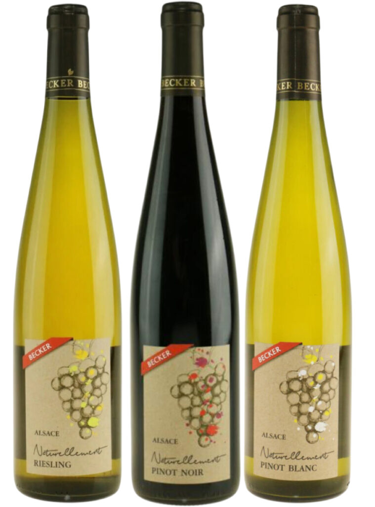 Becker Nature er en pakke, der viser den mest levende og lavinterventionistiske side af Domaine Jean Becker i Alsace. Her får man tre forskellige udtryk fra samme producent: en energisk og citrusdrevet Riesling, en blødere og mere generøs Pinot Blanc og en saftig, kølig Pinot Noir. Tilsammen bliver det en pakke, der føles ren, naturlig og meget madvenlig, men hvor hver flaske stadig har sin egen tydelige personlighed.