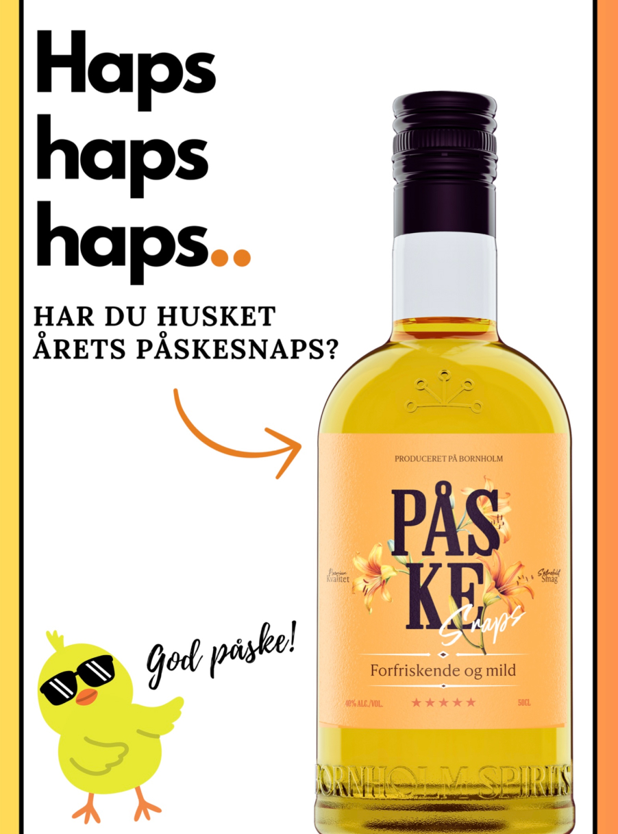 Bornholmer Påske Snaps er en stemningsfuld og karakterfuld dansk påskesnaps fra Bornholm, skabt til at ledsage de klassiske smage på det traditionelle påskebord. Den forener en fyldig akvavitbase med et aromatisk og sæsonpræget udtryk, der gør den oplagt til påskefrokost, smørrebrød og danske frokostretter, hvor både krydrede, salte og let fede elementer skal mødes af noget med varme, friskhed og karakter.