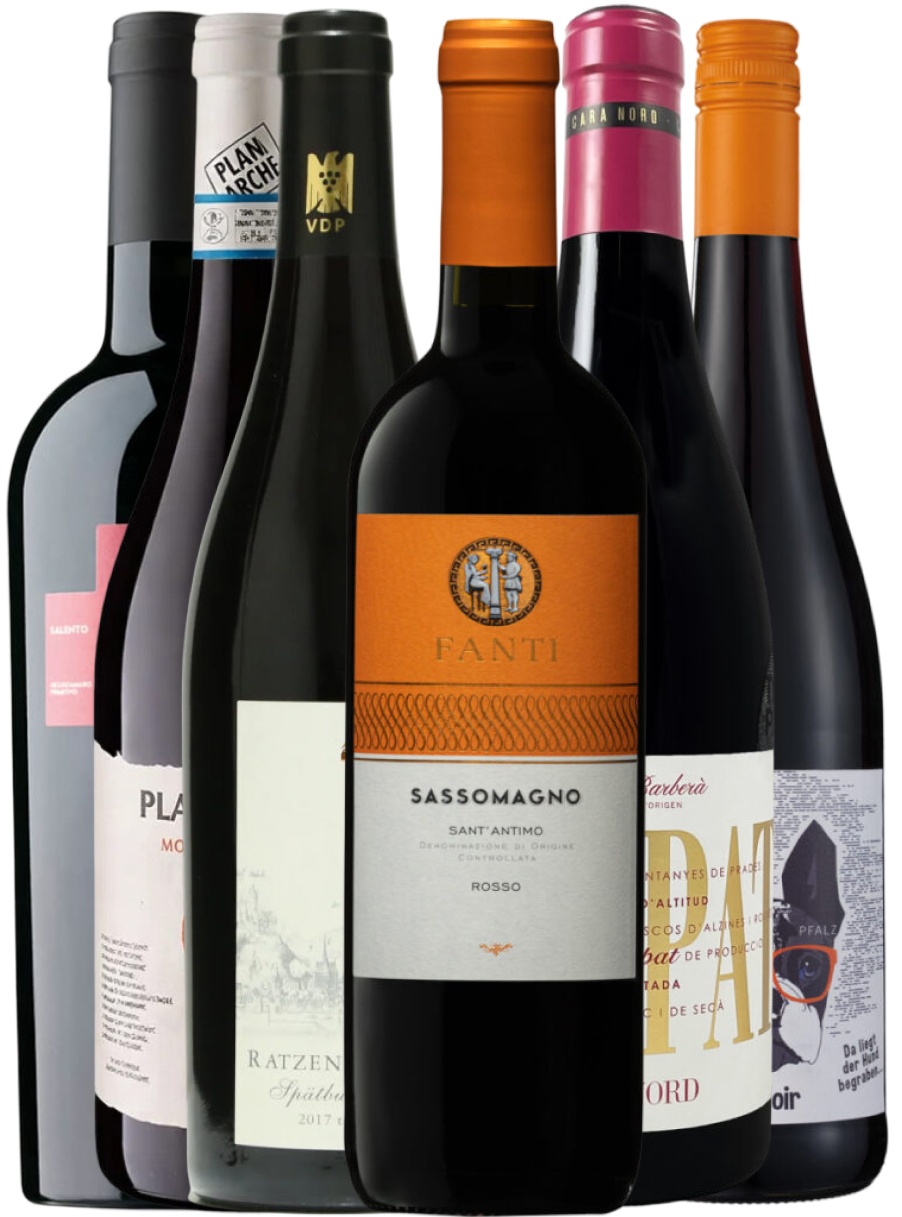 Europas skjulte rødvinsfund er en vinkasse til dig, der gerne vil opdage rødvine uden for de mest oplagte valg. Her handler det ikke om de mest forudsigelige etiketter, men om flasker fra mindre omtalte druer, oprindelser og stilarter, som ofte overrasker med både personlighed og kvalitet. Det er netop derfor, navnet fungerer så godt: dette er røde vinfund fra Europas mere oversete hjørner – fra tysk Pinot Noir og umbrisk blend til salentinsk kraft, toskansk charme og catalansk Trepat.