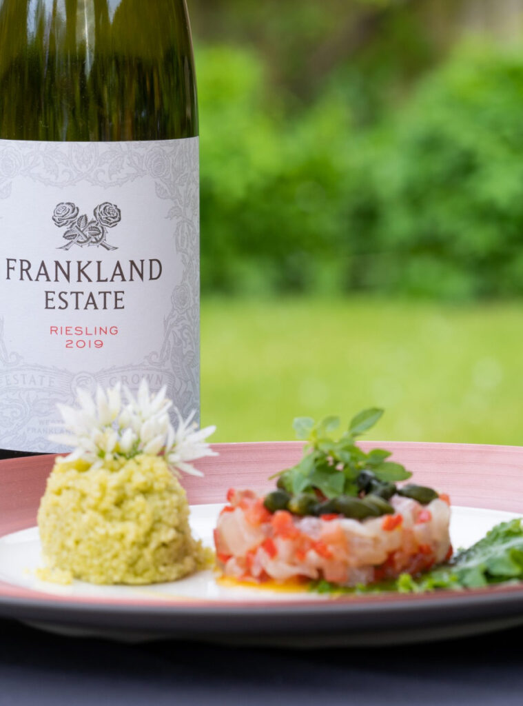 Vinen har en kompleks aroma af både blomster og grøn te samt mere eksotiske toner af citrus, passion og ananaskirsebær. Smagen er ren, sprød og saftig med en appetitvækkende, mineralsk og en smule saltet finish. Fantastisk harmoni mellem de cremede, eksotiske nuancer og den præcise syre. Riesling fra Frankland er noget særligt!