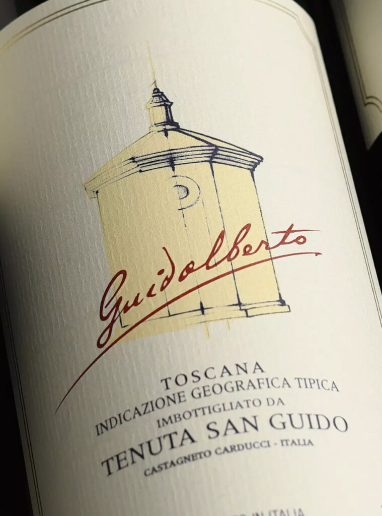 Tenuta San Guido ligger i hjertet af Bolgheri i Toscana, hvor det solrige klima og de stenede jorde skaber optimale vækstbetingelser for vinstokkene. Guidalberto kombinerer Cabernet Sauvignon og Merlot i en harmonisk blanding, hvor Cabernet Sauvignon tilfører struktur og dybde, mens Merlot bringer blødhed og en umiddelbar charme. Resultatet er en vin med stor elegance, som kan nydes i sin ungdom, men også har et solidt lagringspotentiale.