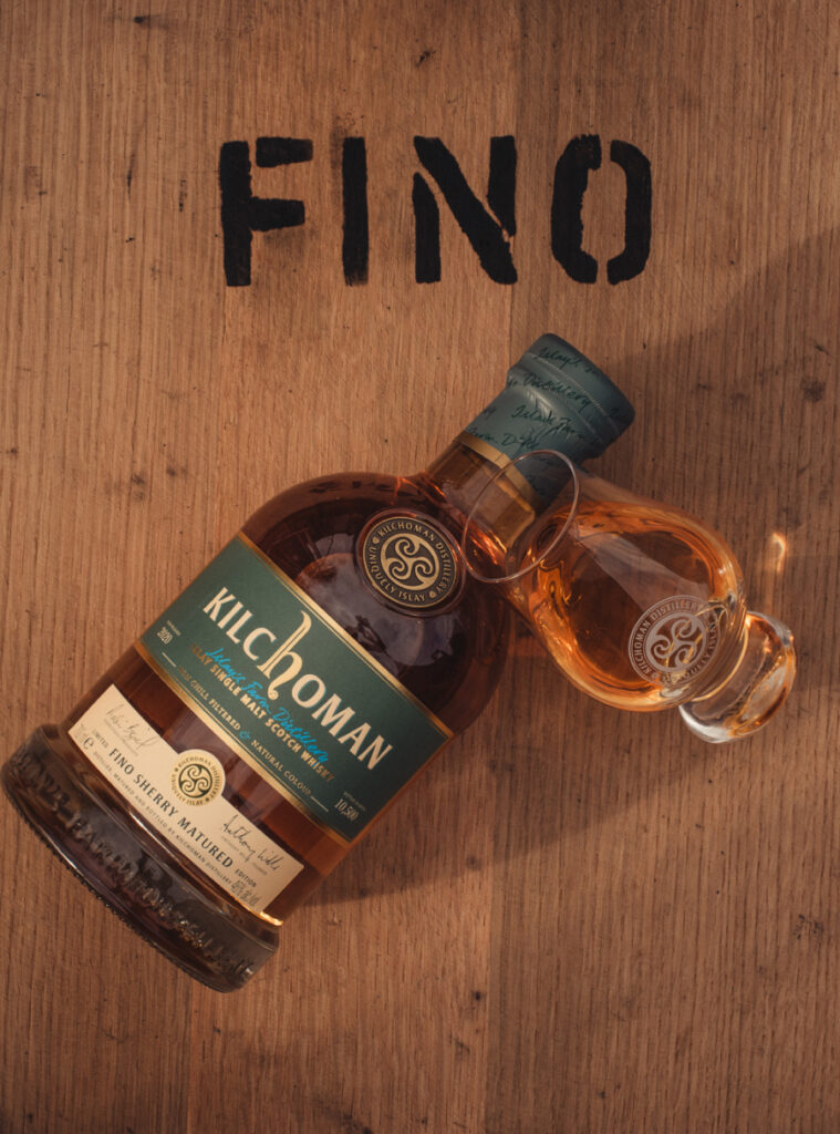 Kilchoman Fino Sherry Cask Matured er en særlig udgivelse, der demonstrerer, hvordan Kilchomans røgede spiritus harmonerer med den tørre elegance fra fino sherryfade. Whiskyen har modnet udelukkende i førsteklasses fino sherryfade fra Jerez i Spanien, hvilket giver en helt unik balance mellem Islays maritime røg og den friske, nøddeagtige kompleksitet fra finoen.