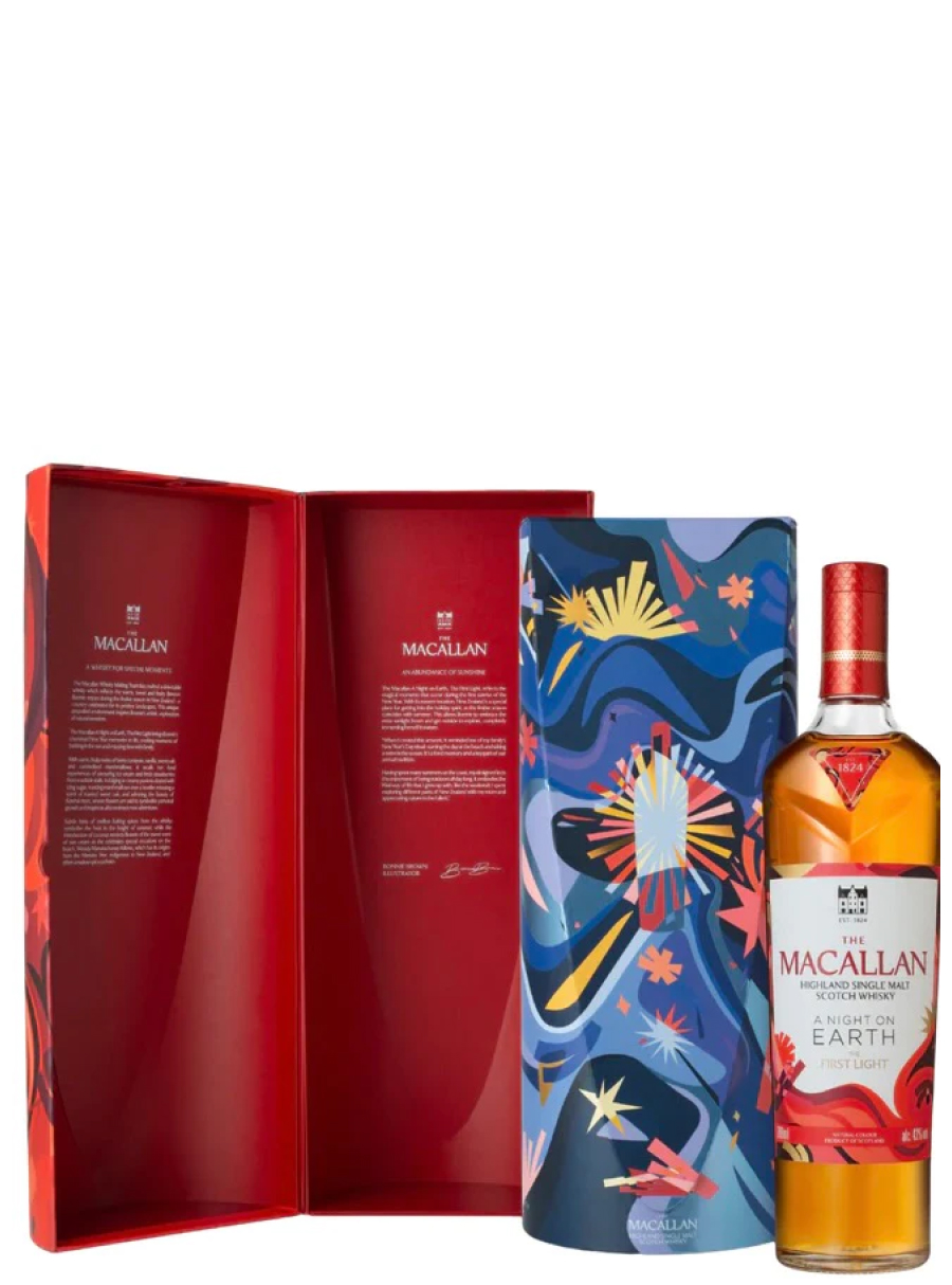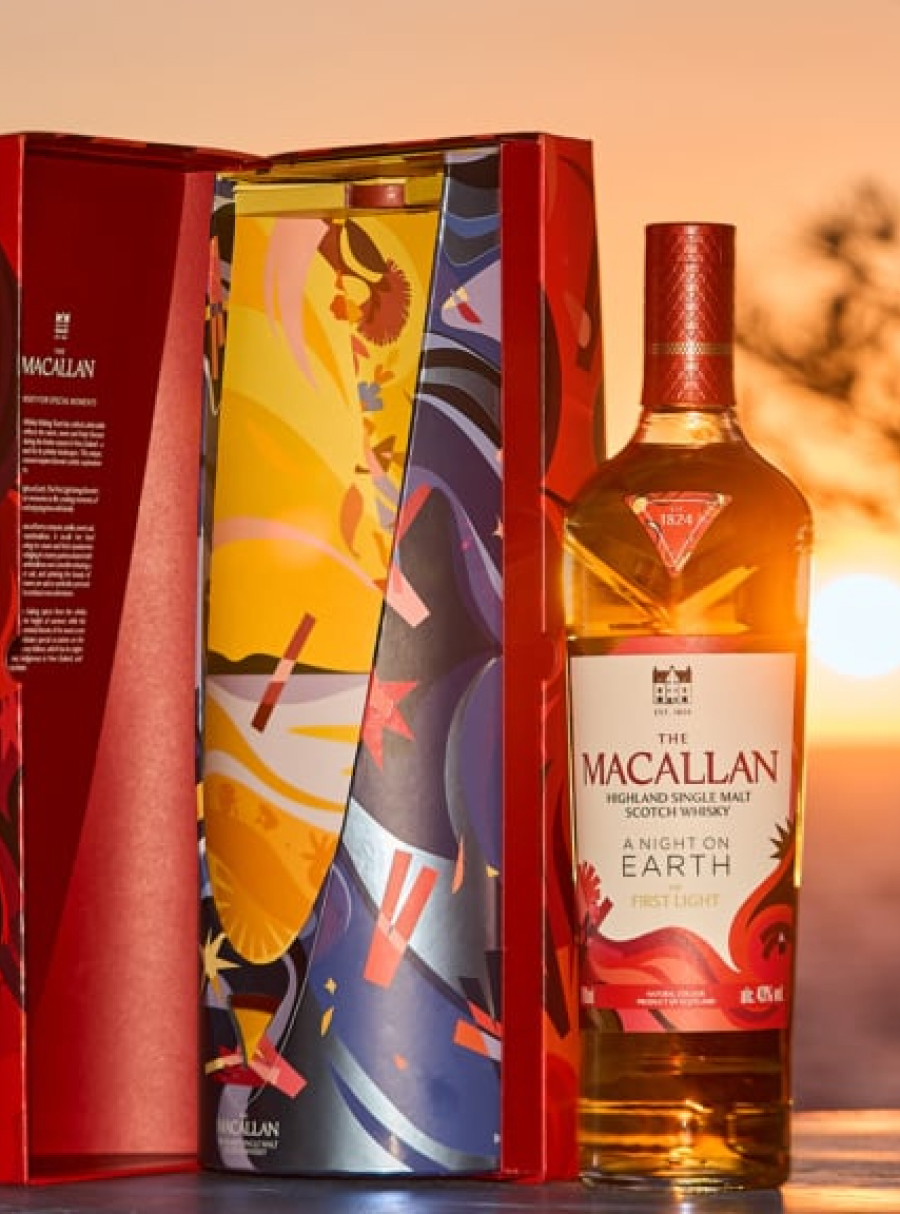 The First Light er den nyeste udgivelse i Macallans årlige A Night On Earth-serie – skabt til at fejre de særlige øjeblikke, når et år rinder ud, og et nyt begynder. Udgaven henter sin fortælling i et af de første steder på jorden, der hilser nytårsdagens solopgang velkommen, og den visuelle identitet er skabt i samarbejde med kunstneren Bonnie Brown, hvis formsprog indfanger gryningens farver og energi.
