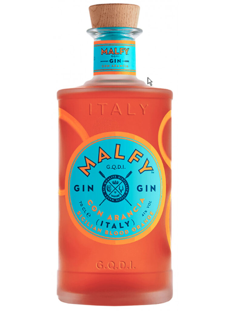 Malfy Gin Con Arancia er Malfys solmodne appelsin-gin: en tør, enebærsdrevet gin, hvor skal fra sicilianske blodappelsiner giver farve, duft og en generøs citruskarakter. Duften åbner med saftig blodappelsin og rød citrus, efterfulgt af enebær, koriander og et let krydret strejf. Smagen er ren og frisk med tydelig appelsinzest over en rank ginrygrad; midten er blød og let bæragtig med diskret frugtsødme, mens eftersmagen er tør, sprød og citruslang med en kølig urtepræg. Teksturen er smidig og let, hvilket gør den meget anvendelig i cocktails.