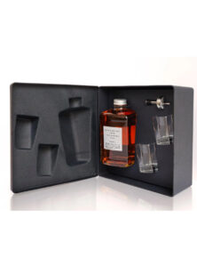 Denne udgave kommer i en ny-designet, minimalistisk og mere miljøvenlig kasse, samt 2 glas og en skænkeprop.
