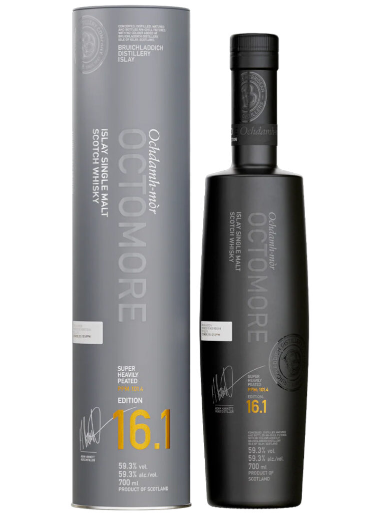 16.1 er fremstillet med 100% Scottish Mainland Concerto byg, maltet til 101,4 PPM og lagret på fade i 5 år med en alkoholprocent på 59,3%. Denne elegante spiritus er modnet på first-fill bourbon barrels, hvilket fremhæver intens tørverøg med overraskende finesse. Saltet karamel, honningmelon og abrikos leder videre til noter af chokolade og kokos, ledsaget af bløde, jordede mineralske nuancer og vedvarende røg.