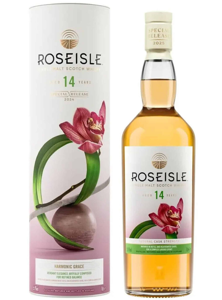 Om udgivelsen Dette er den hidtil ældste officielle Roseisle i Diageos Special Releases. 2025-udgaven er tappet ved 55,9 % og lagret i en kombination af refill og rejuvenated fade for at løfte husets naturlige karakter uden tungt fadaftryk.