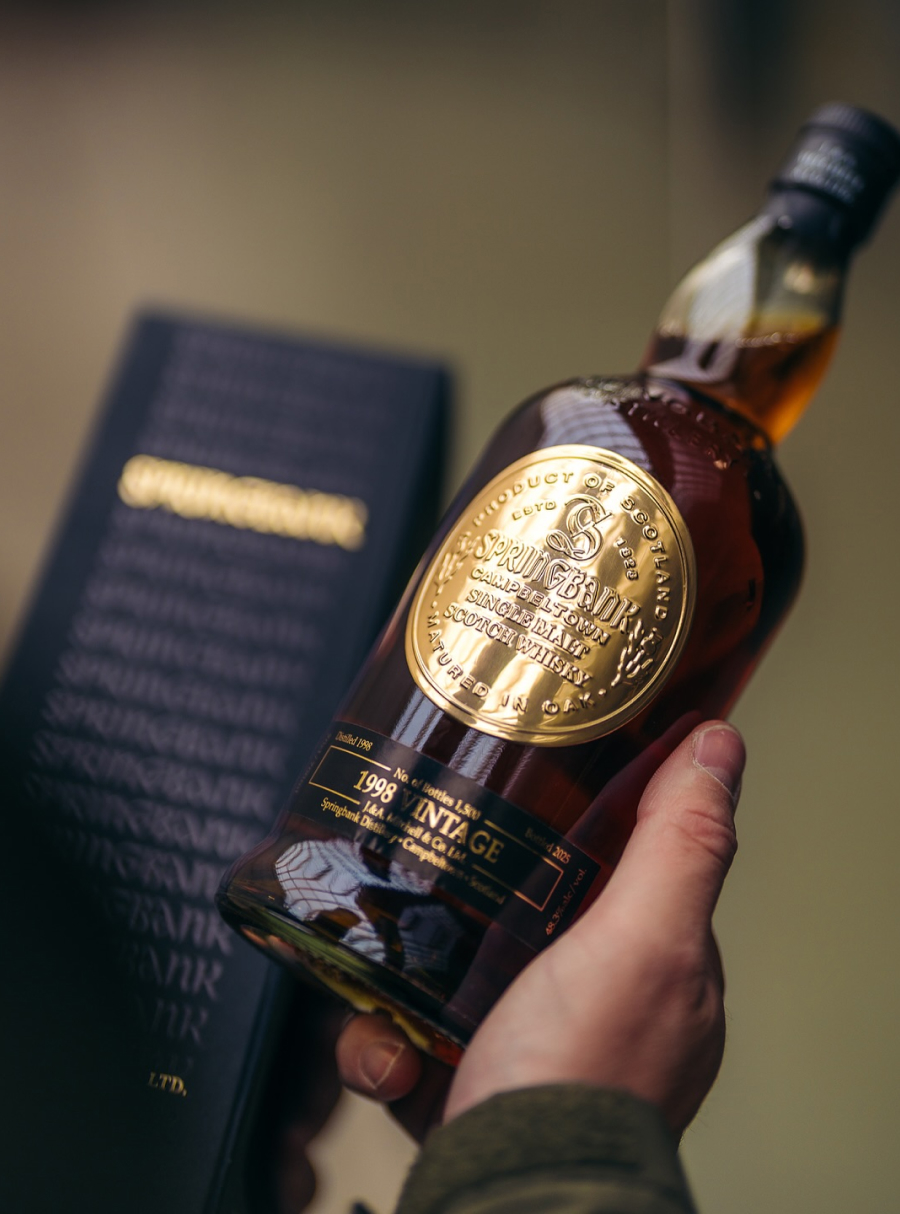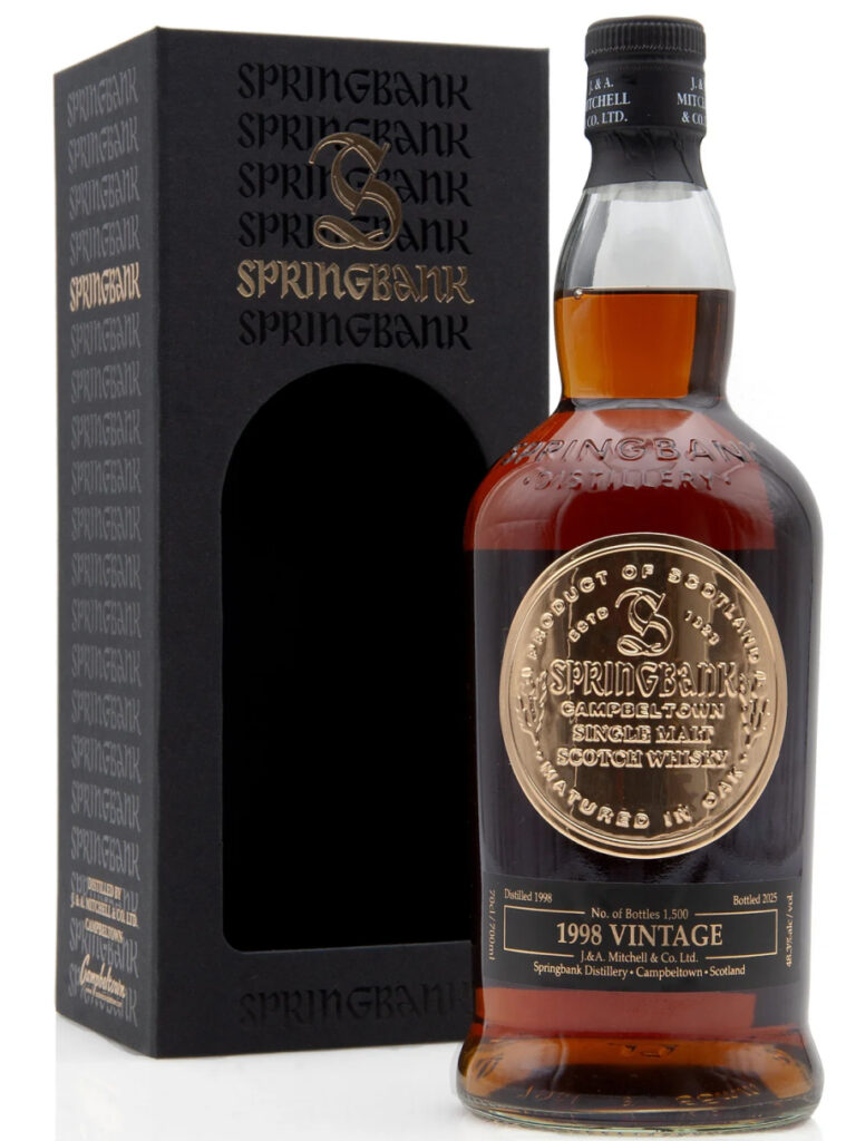 Springbank 1998/2025 Vintage Series er en eksklusiv og eftertragtet single malt fra det klassiske Campbeltown-destilleri Springbank. Denne udgivelse markerer starten på destilleriets nye årlige Vintage Series og er en hyldest til håndværket, traditionen og den unikke karakter, som Springbank er kendt for. Whiskyen blev destilleret i 1998 og tappet i 2025, hvilket giver den en imponerende alder på 26 år. Den er aftappet ved 48,3 % ABV, uden kølefiltrering og uden tilsatte farvestoffer, for at bevare alle naturlige aromaer og nuancer.