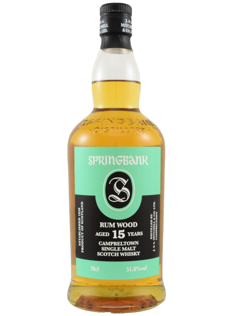 Springbank 15 Years Rum Wood 51 % er en begrænset Campbeltown single malt, der har tilbragt hele sin lagringstid på romfade. Whiskyen blev destilleret i 2003 og tappet i 2019 ved fadstyrke 51 %, uden kølefiltrering og uden tilsat farve. Resultatet er en kraftig, olieret whisky, hvor klassisk Springbank-funk, havsalt og let torverøg møder romsødme og tropisk frugt.
