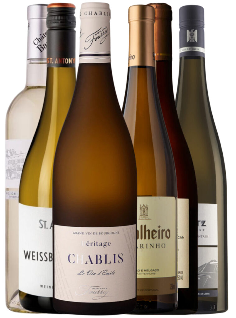 Til Fisk & Skaldyr er en kasse skabt til dig, der gerne vil have hvide vine med friskhed, præcision og den slags energi, der får fisk, skaldyr og lyse retter til at løfte sig ved bordet. Her mødes seks forskellige udtryk – fra mineralsk Chablis og saltet Muscadet til aromatisk Alvarinho, elegant Provence-hvidvin, saftig Weissburgunder og rank Riesling. Det er en pakke, der både føles sommerlig, anvendelig og lidt luksuriøs, men stadig let at gå til.