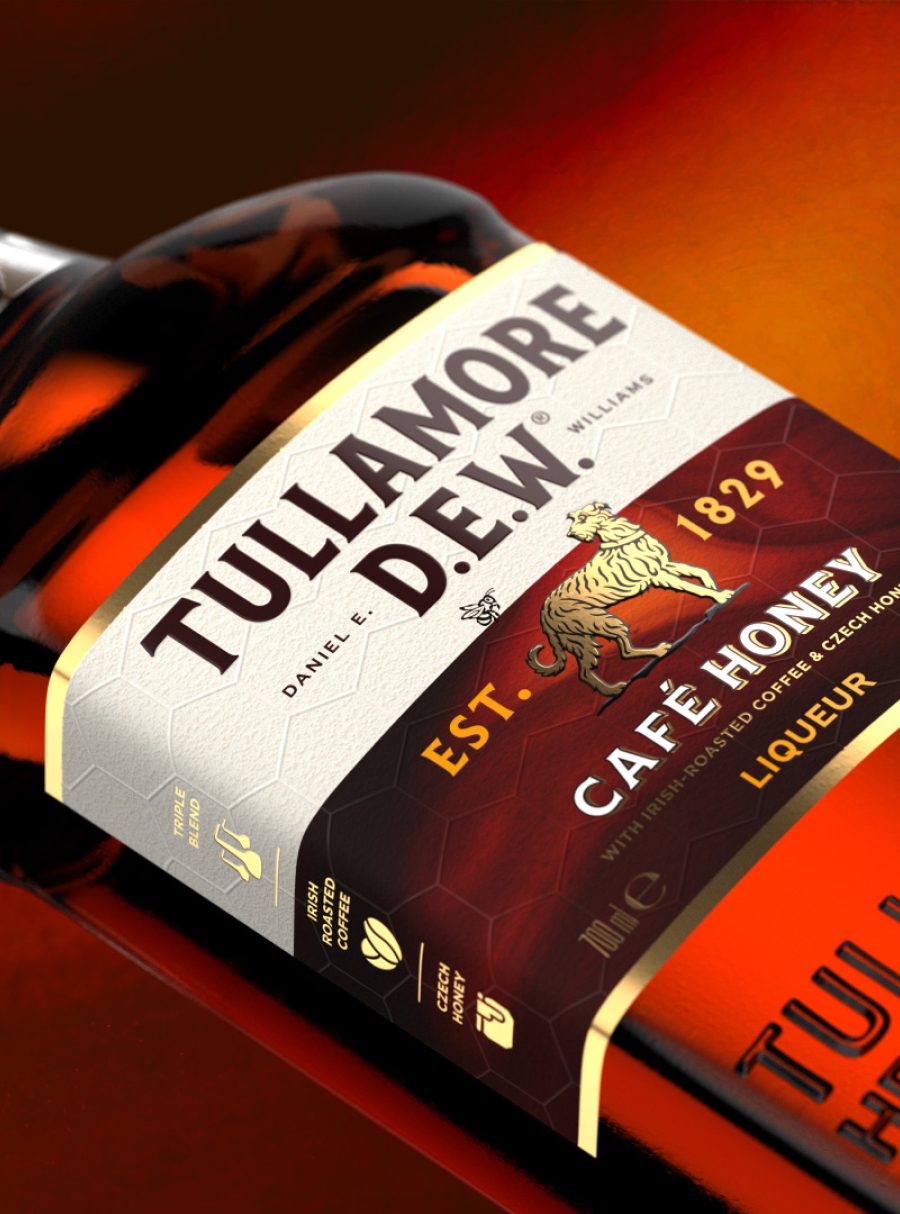 Tullamore D.E.W. Café Honey er en moderne, dessertinspireret whiskylikør, hvor blød, triple-destilleret irsk whiskeymøder rigt ristet kaffe og en sød, rund honningfinish. Stilen lægger sig midt mellem klassisk irsk whiskey og kaffelikør – men med mere dybde, varme og “whisky-karakter” end mange rene likører. Tænk tiramisu-vibes: fløjlsblød kaffe, let kakao/karamel-fornemmelse og en honningsødme, der afrunder uden at blive tung.