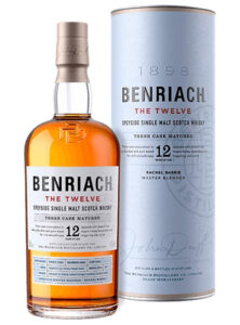 BenRiach The Twelve är en utmärkande 12-årig single malt whisky från Speyside, noggrant sammanställd för att balansera elegans och komplexitet. Den har mognat i tre olika fattyper – amerikanska bourbonfat, spanska sherryfat och nya ekfat – vilket resulterar i en flerdimensionell smakprofil där rik fruktighet, värmande kryddor och mjuk ek går hand i hand.