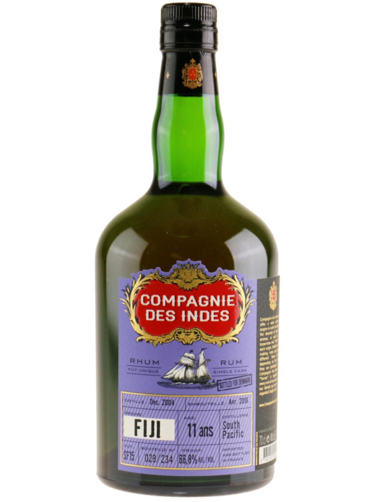 Hur och av vem den är producerad Rommen är en single cask från South Pacific Distillery på Fiji, gjord på melass och lagrad på bourbonfat. Dansk återförsäljarinformation beskriver att den först fått en inledande lagring på Fiji och därefter vidare mognad i Frankrike, innan den buteljerades i april 2016 som cask no. SF15. Upplagan är 234 flaskor för Danmark. Den buteljeras av Compagnie des Indes, ett franskt independent bottler-hus grundat 2015 av Florent Beuchet, med fokus på att välja ut rom från olika ursprung och förädla dem i Frankrike.