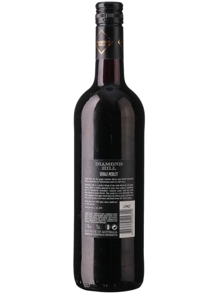 Diamond Hill Shiraz Merlot har en vacker mörkröd färg med violetta skiftningar och en stor doft av mogna frukter. Smaken är kraftfull, med kryddig fyllighet och mogna tanniner från Shiraz-druvan, kombinerat med mjukhet och värme från Merlot.