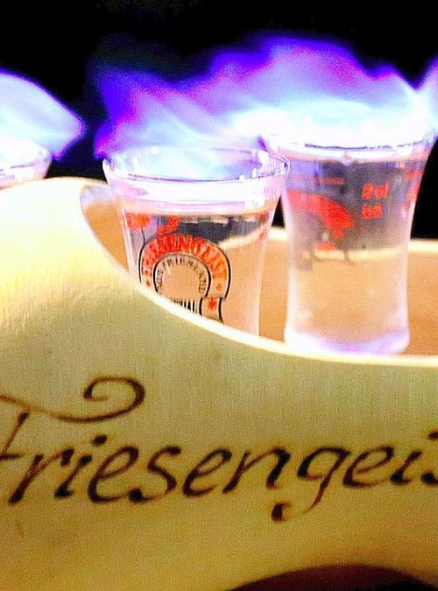 Friesengeist är en klassisk nordtysk specialitet med rötter i Friesland och Ostfriesland längs Nordsjökusten. Namnet kan översättas ungefär som ”frisisk ande”, och drycken har länge varit en del av den lokala kustkulturen där den ofta förknippas med värme, gästfrihet och lite kaxig tradition. Den har fått ett särskilt rykte genom sin kraftiga styrka och den ritualiserade serveringen som ibland förekommer i barer och på restauranger.