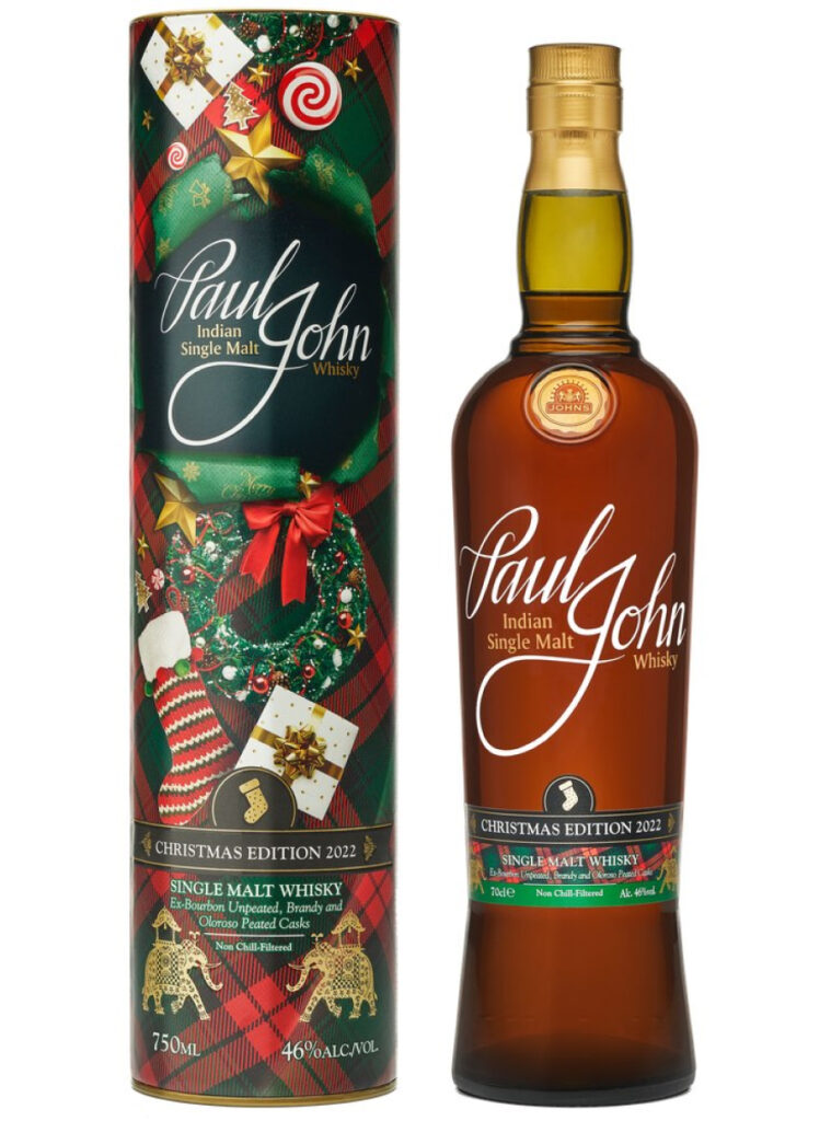 Paul John Christmas Edition 2022 är en indisk single malt från Goa, buteljerad vid 46 %. Det är den femte julutgåvan från Paul John, skapad för att fånga känslan av juldessert i glasform. Whiskyn bygger på malter som först lagrats på ex-bourbonfat och därefter finishlagrats i en kombination av brandyfat och peated Oloroso-sherryfat, vilket ger en rik, mörkfruktig stil med lätt rök och tydlig krydda.