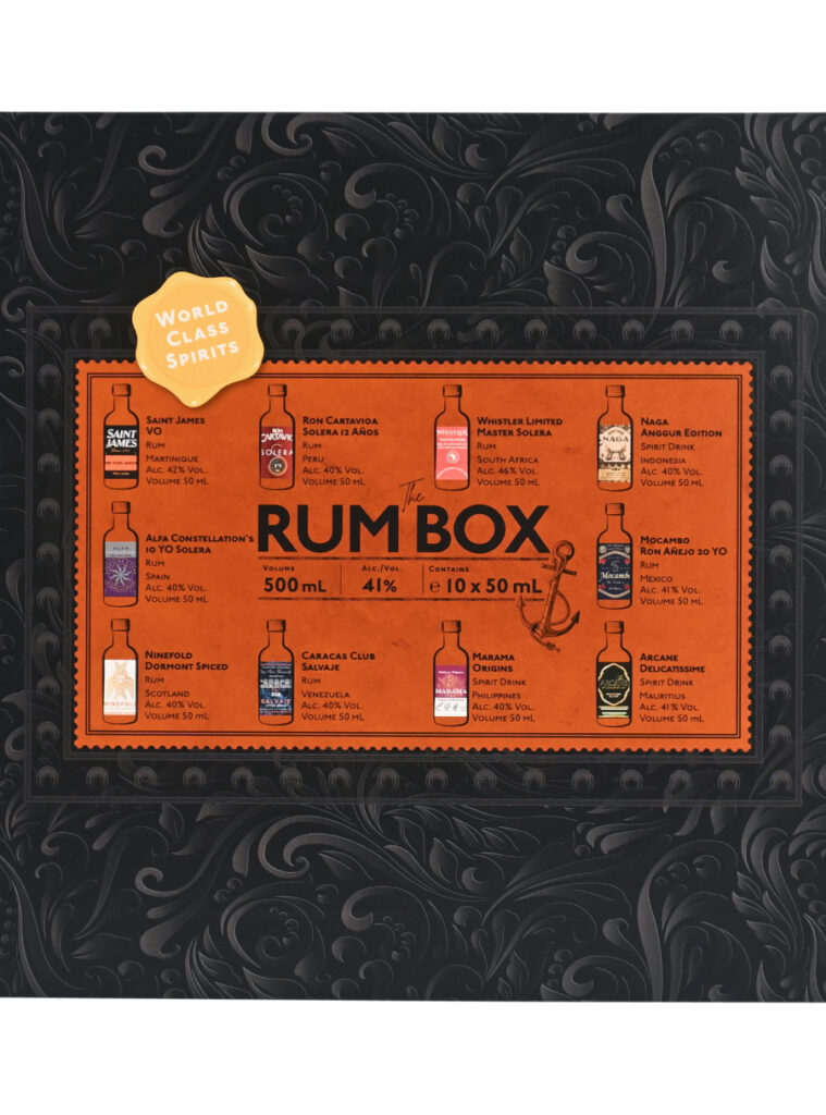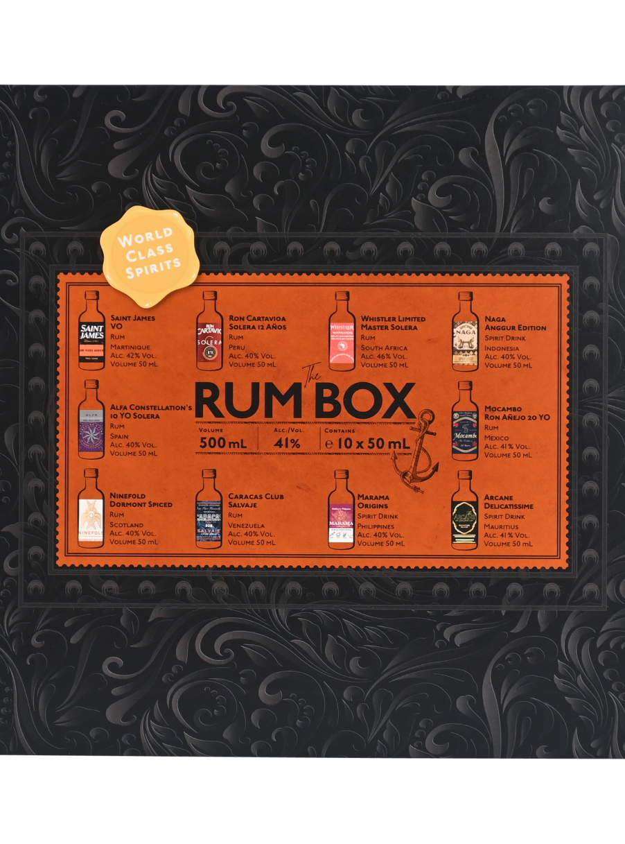 The Rum Box är ett smakset med 10 exklusiva rom-/spirit drinks från hela världen. Varje sprit har valts ut noggrant för att ge en upplevelse av mångfalden inom romvärlden. The Rum Box är tillverkad av material av hög kvalitet, med en illustrativ design som gör varje enskild rom inbjudande och attraktiv.